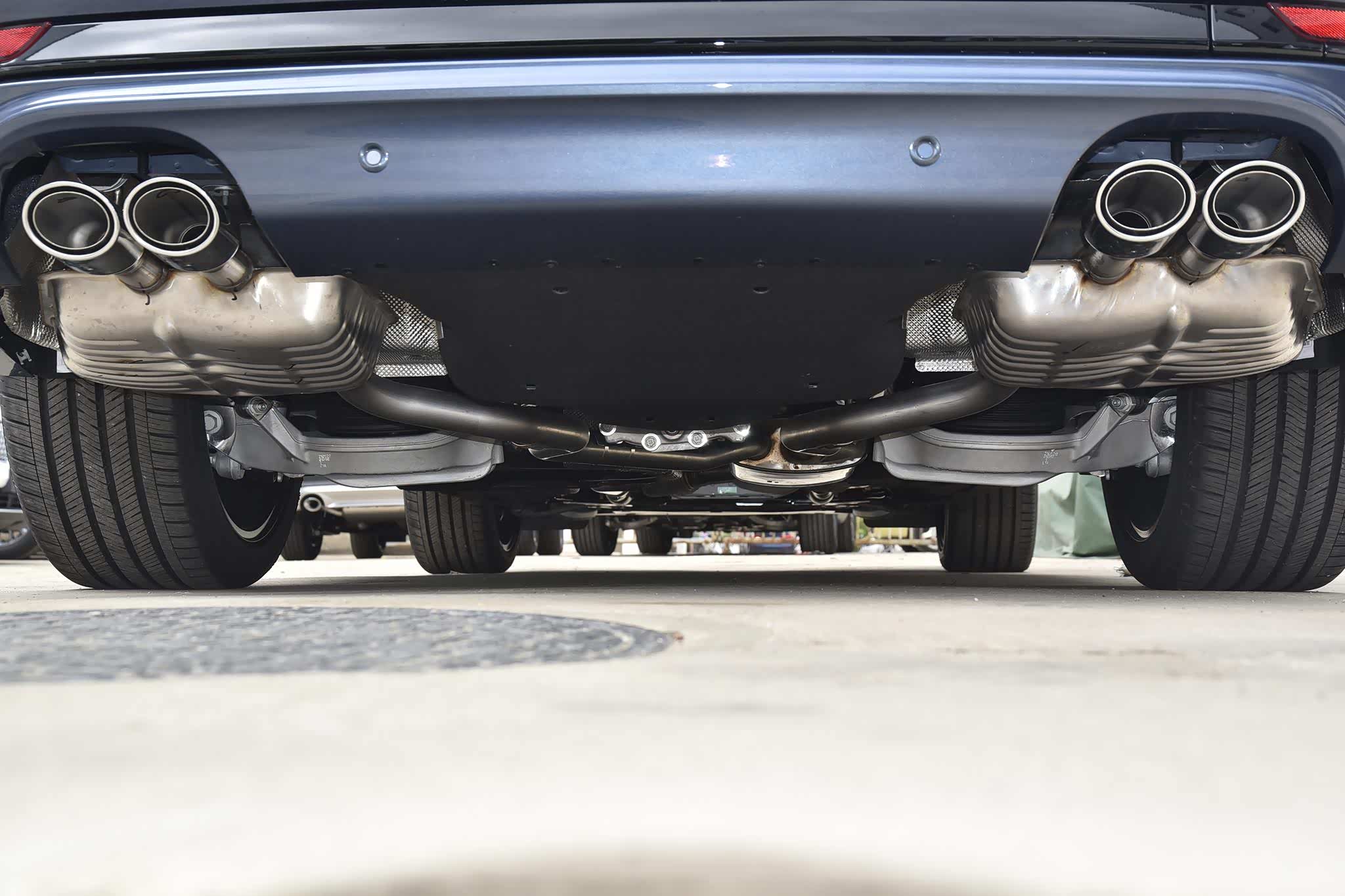 车尾造型层次分明,且使用了一体贯穿地平线式尾灯,让车尾显得很宽大沉稳。双边共四出排气都是货真价实的“真家伙”,充满了力量感,让人不敢小瞧这台车。左侧还有“Presidential”专属标识,表明了这台飞行家总统版的特别身份。