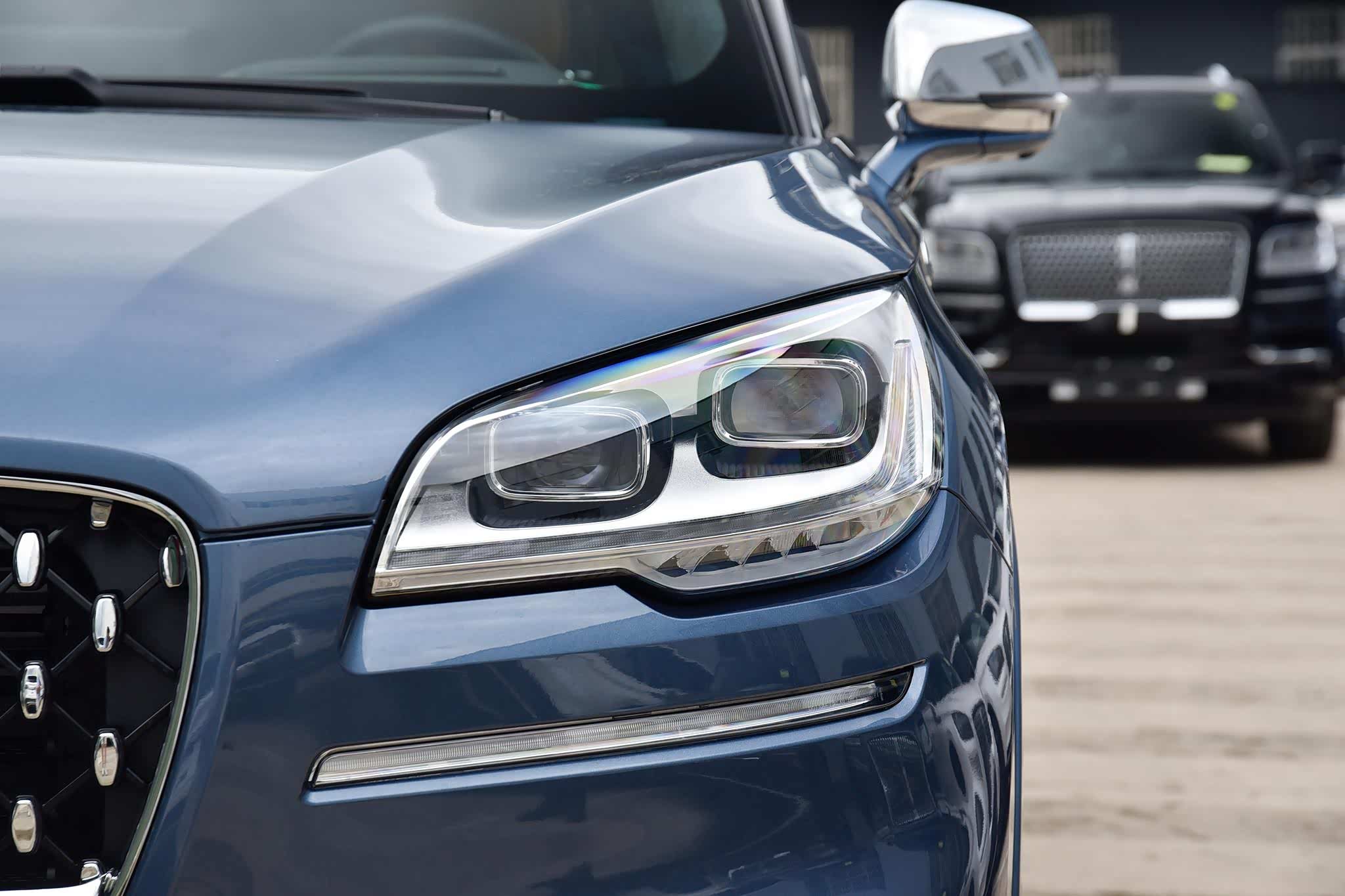 林肯飞行家总统版的前脸和其他款的区别在于中网,总统版中网里的“小logo”是实心的,且做了镀铬处理,比其他款要更加精致时尚。配备了自适应LED矩阵前大灯,可以利用前置摄像头对前方道路、交通标识和其他车辆位置进行监测和判断,自动调整光束,比较智能。