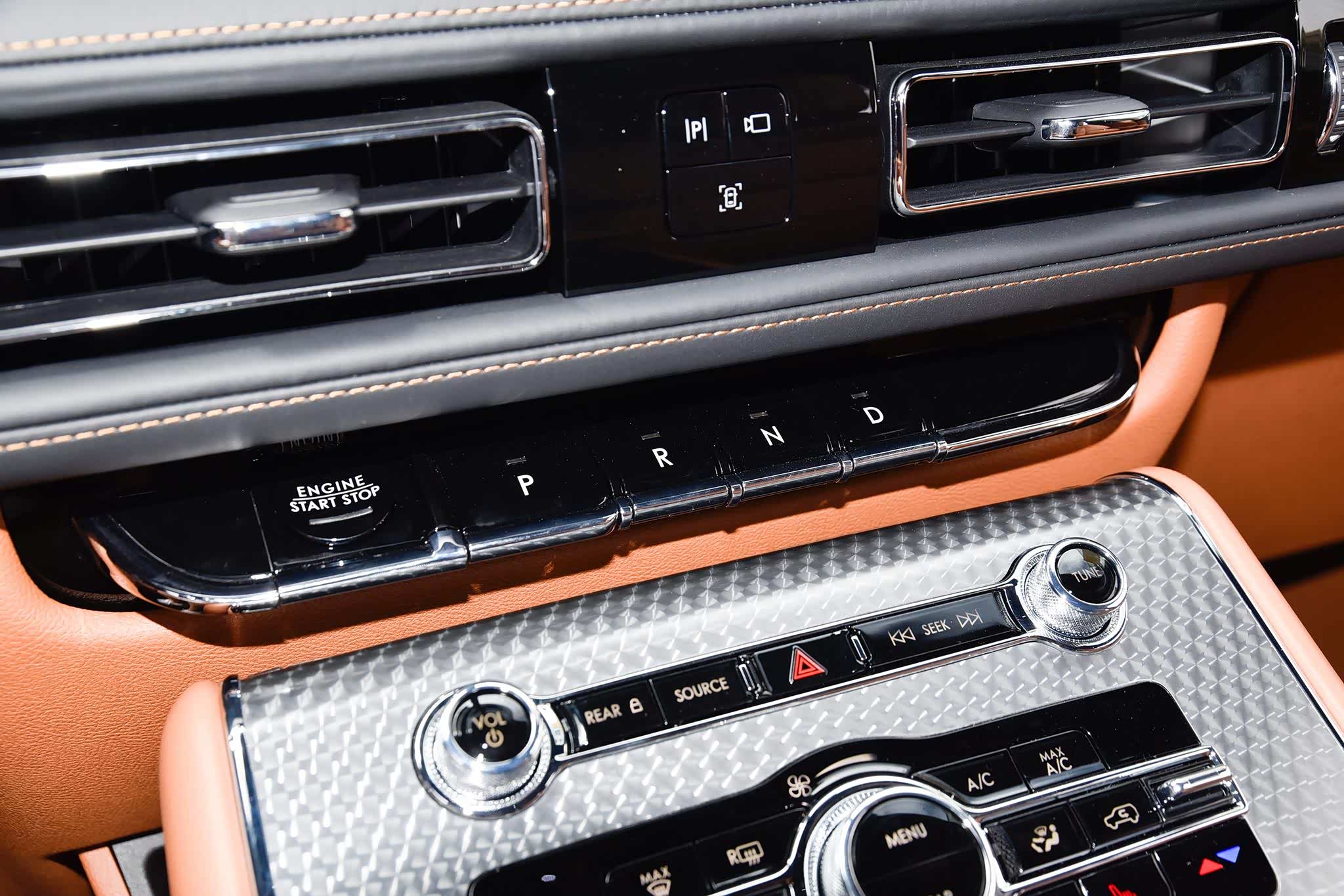 进到车内,你会发现美系车以往的粗狂风格不见了,转而取代的是精致与豪华。座舱内采用了大量的横向线条设计,呈现出地平线般一望无际的辽阔和平静,非常大气。飞行家总统版的这套座舱主题叫做“翱翔新境”,在内饰用料上要比普通版更胜一筹。