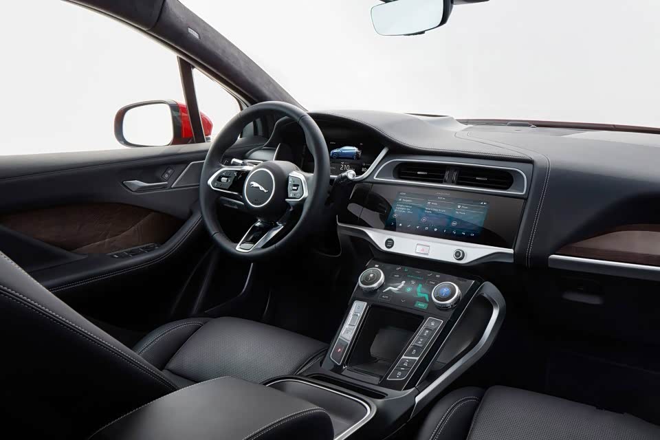 其腰线流畅,低置的驾驶室及流畅的翼子板设计营造出一派动感风范,与彰显疾速、逐渐收紧的车身腰线相得益彰。这款车在细节造型上也做的很细致,I‑PACE充满未来感的纤细LED前大灯采用捷豹标志性的双J型造型图案,让其风驰电掣的公路表现更引人注目,其车身同色、黑色撞色或全景玻璃天窗的车顶,则赋予整车更为流畅的造型。I-Pace内部配备高级座椅、时尚的仪表盘并且科技感浓厚。配有10英寸中央触摸屏,并且可连接安卓和苹果手机系统,非常方便。