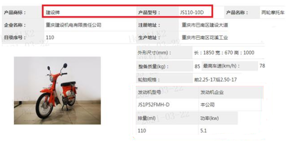建设“柯基”110的型号为JS110-10D,而在车身设计方面,长宽高分别为1850mm、670mm、1000mm,是一款比较标准的弯梁车型。另外,还公布了这款车的整备重量和最高车速,分别为85kg和78km。