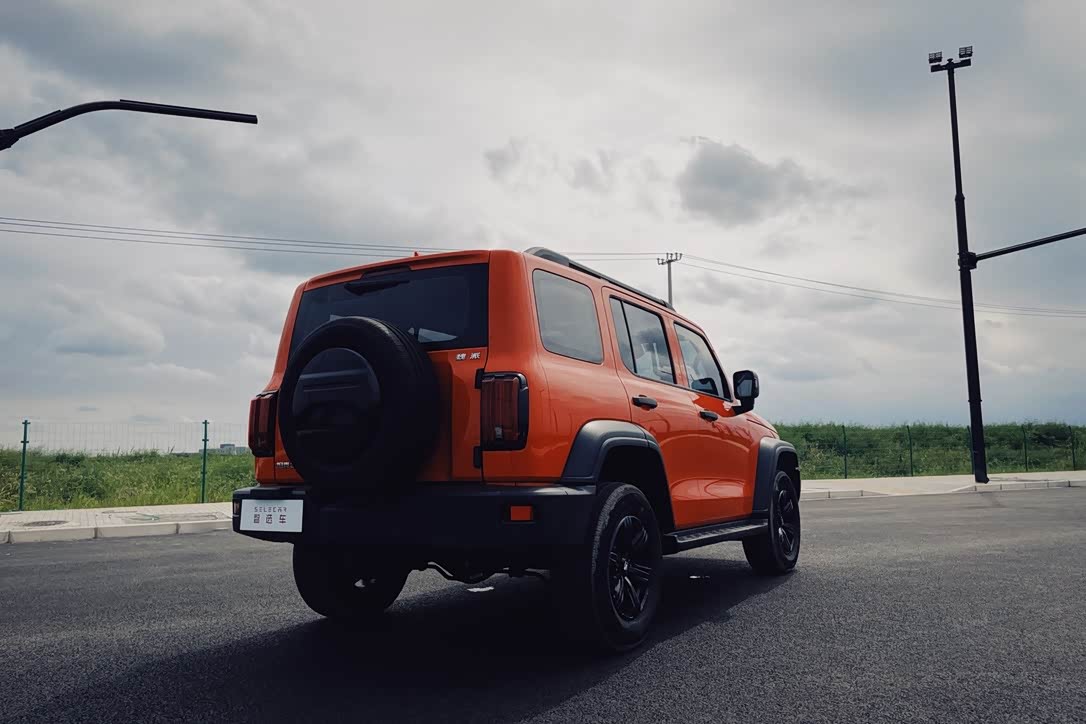 来到车尾,坦克300的车尾依旧贯彻着复古硬汉风设计,外挂备胎、车牌侧挂,显得整体设计非常具有肌肉感。尾灯采用了长方形设计,后备厢也采用了复古样式的侧面开启。