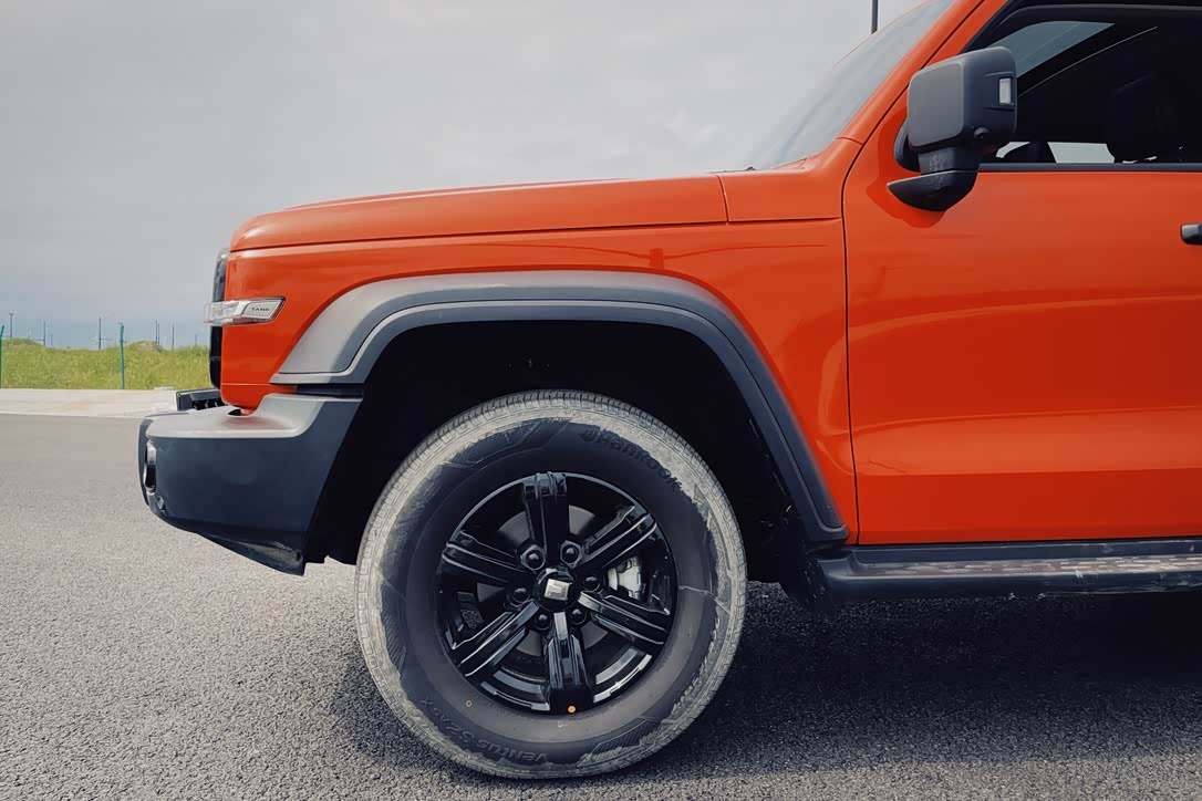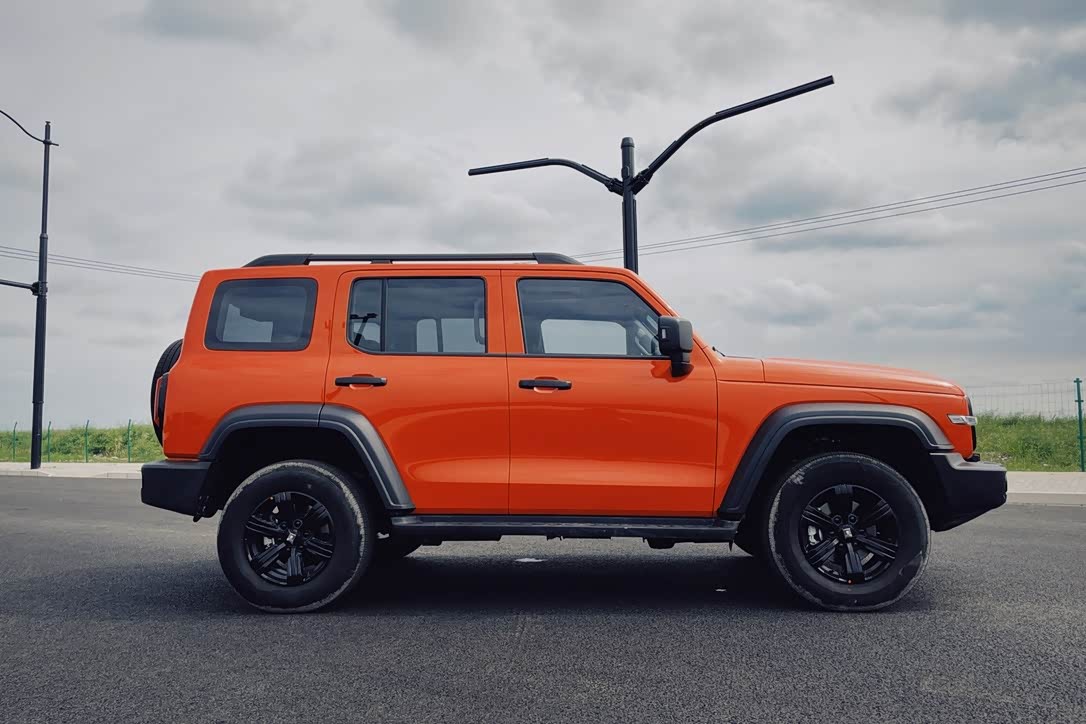 车身侧面可以看到坦克300的整体设计贯彻了平直的方正造型,突出的轮眉搭配上熏黑轮毂显得非常硬汉,车顶也增加了行李架,整体离地间隙也非常宽裕。