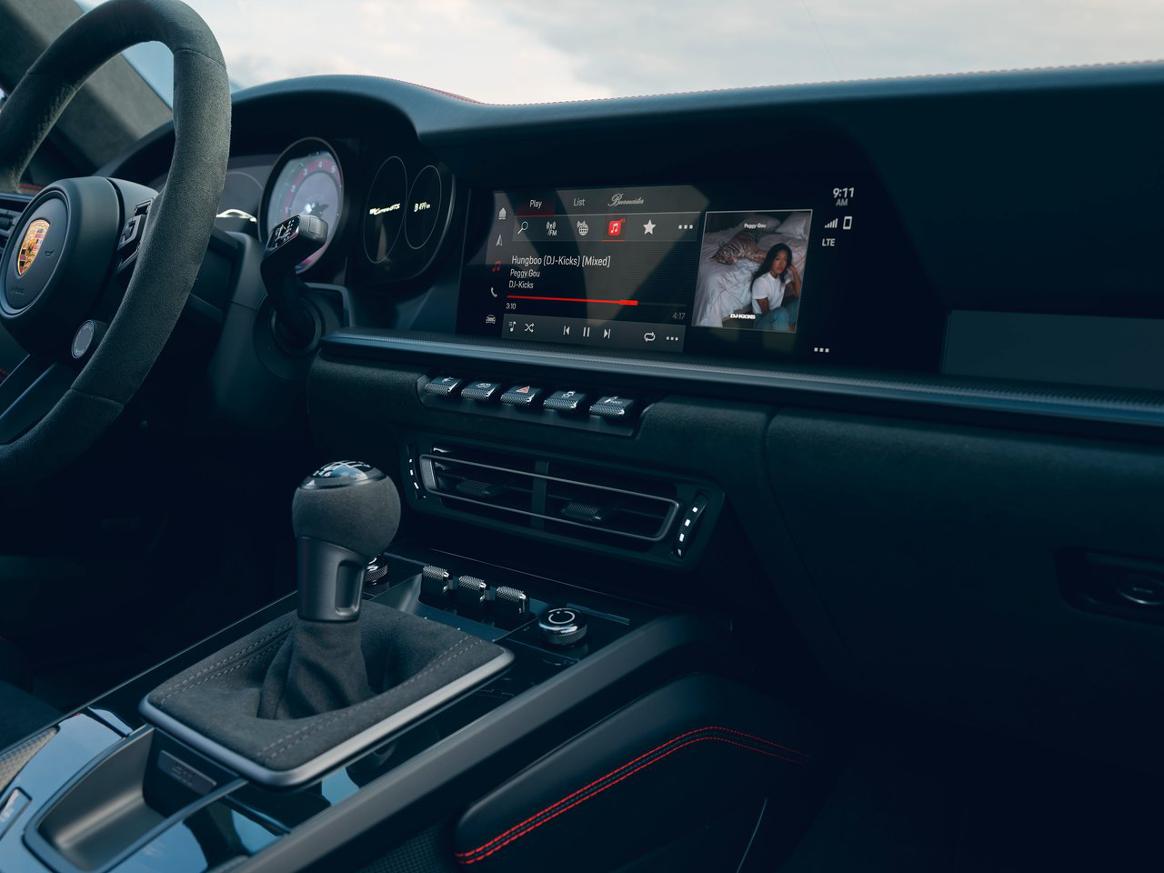 一体式运动座椅采用Alcantara+真皮用料的皮质包裹,并辅以碳纤维材质。相较于老款的Carrera版本车型,全新保时捷911 Carrera GTS在内饰的氛围营造上显得更加运动激进。