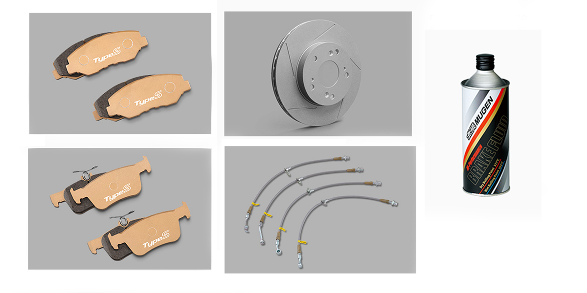 制动部分MUGEN提供了原车替换式前后高温刹车片、划线刹车盘、刹车缸喉、刹车油这些日常都会用到的产品,算是原厂的升级版本,也能有效提升11代思域的制动性能。