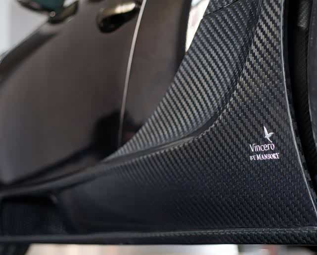 MANSORY迈莎锐VINCERO,包括车头前引擎盖、前唇、前保、前车顶,后车身、后保、扰流、尾翼等60%以上车体,均采用了航空级锻造碳纤维材料,车体重量更轻、强度更高。