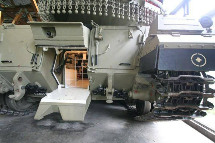 在现役的战车中几乎只有“梅卡瓦”采用了发动机前置的设计;“梅卡瓦”还在发动机舱的背后,设有能携带步兵的空舱。
