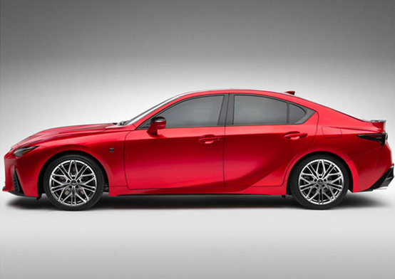 车身侧面,新车依旧是雷克萨斯家族式的设计语言,锐化处理后的线条使外观更加激进,并在车身尾部配备了小宽体的造型,再次增加运动感。新车配备了多辐式的铝合金轮毂,并使用高性能刹车卡钳,增加车辆实用性。车尾部分,新车使用了斜置的双边双出的排气,配合上底部的熏黑扩散器,增加了车辆运动感与实用性。