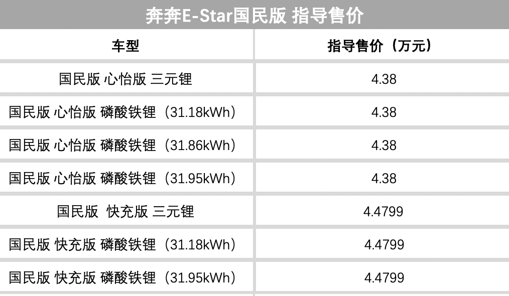 上周,长安汽车旗下奔奔E-Star国民版·心怡版正式上市。该车基于长安奔奔E-Star国民版打造,针对配置进行升级,配备大尺寸彩色中控屏,具有蓝牙、手机互联和倒车影像等功能。此外,该车相比奔奔E-Star国民版增加了全铝合金轮毂,以及驾驶席安全气囊。动力方面,新车搭载永磁同步电动机,最大功率55kW,峰值扭矩170N·m。该车根据不同配置版本,分别匹配三元锂电池和磷酸铁锂电池,部分车型将支持快充模式,可在50分钟完成0%-80%的电量补充。