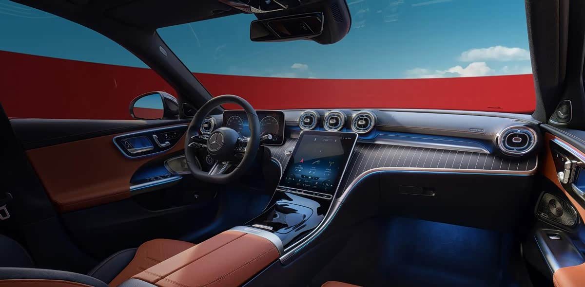 内饰方面,全新一代C级同样大幅延续了全新S级的设计手法,标配的12.3英寸全液晶仪表和竖状布置的11.9英寸中控屏为车内增添了较强的科技感。而类似游艇的倾斜式的中控台造型搭配大面积的木纹饰板以及圆形的空调出风口,让车内的高级感相比同级别竞品有明显的优势。