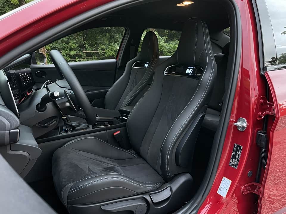 车内的设计,也与我们熟悉的伊兰特有很大的不同。方向盘、变速杆、座椅等与车身接触的主要部件都换成了N系列专属部件,营造出不一样的氛围。