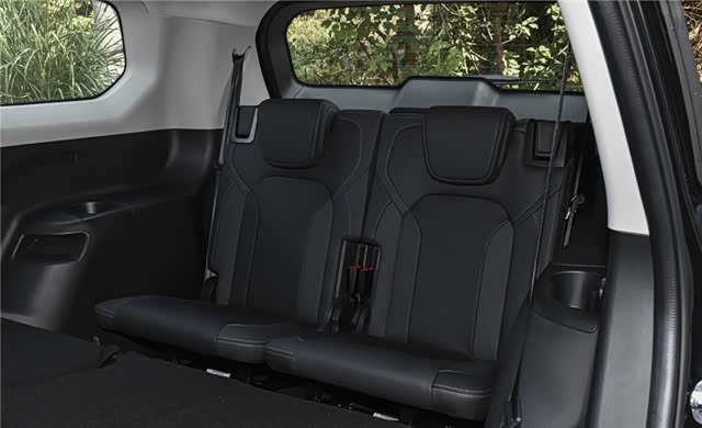 车内采用了2+3+2的7座布局,身高1.77米的乘客坐进第二排,无论头顶还是腿部空间都不错,座椅厚实宽大,坐垫也比较长,能够对身体和大腿部位起到很好的承托,而第三排的腿部空间刚好够用,头顶不会有压抑感,乘坐舒适性肯定不如前两排,适合短途应急,长途乘坐会容易累。