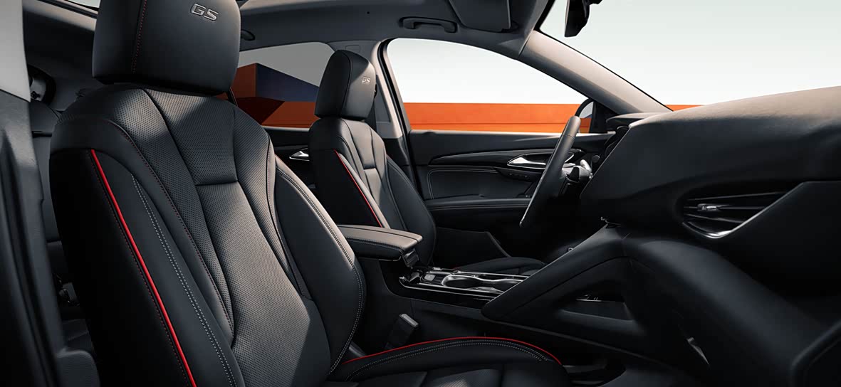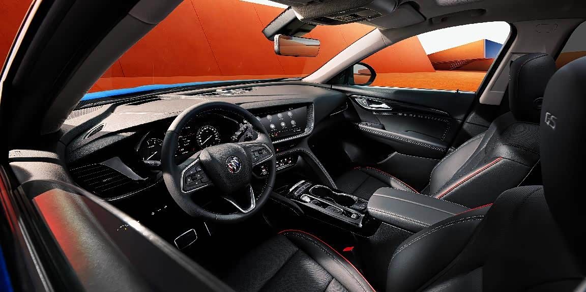 在外观方面,2022款别克昂科威S GS车型采用长引擎盖、短后悬、长轴距设计,除了专属幻影蓝车身配色外,2022款别克昂科威S GS的格栅、外扩轮眉、外后视镜、车顶行李架等细节都采用了酷黑色涂装,20吋高亮黑铝合金轮毂搭配GS红色刹车卡钳,并匹配马牌低滚阻轮胎。同时在车内,2022款别克昂科威S GS还采用运动红黑打孔真皮内饰、GS运动踏板、GS迎宾踏板等,运动感进一步得到了提升。