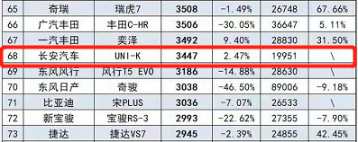 由于魏牌摩卡、长安UVI-K以及吉利星越L上市先后有时间差,长安UVI-K在今年3月底上市,8月份销量基本上已经稳定,3千多的销量预计就是长安UNI-K的市场表现。