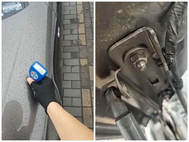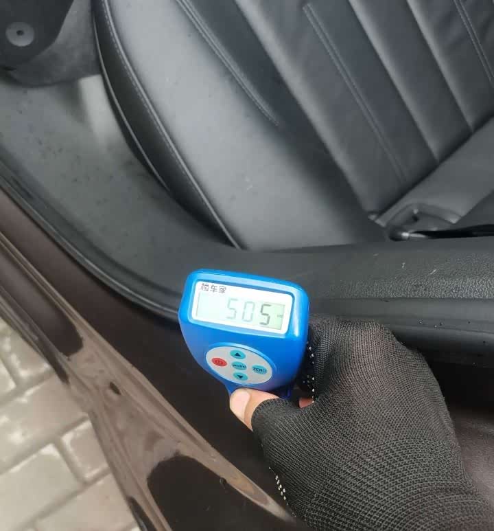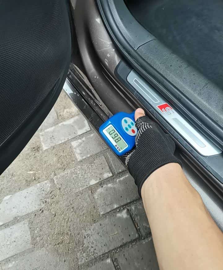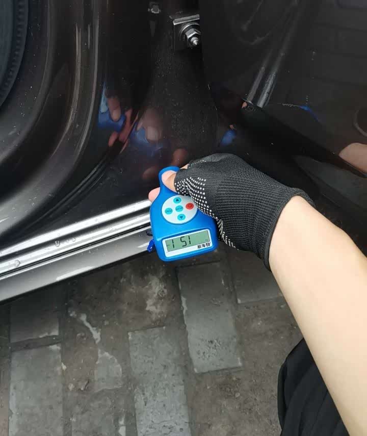 下门槛的漆面厚度达到了860μm,这得多厚的腻子啊!不过门槛这个地方钣金是无法定义事故车的,除非切割烧焊更换。