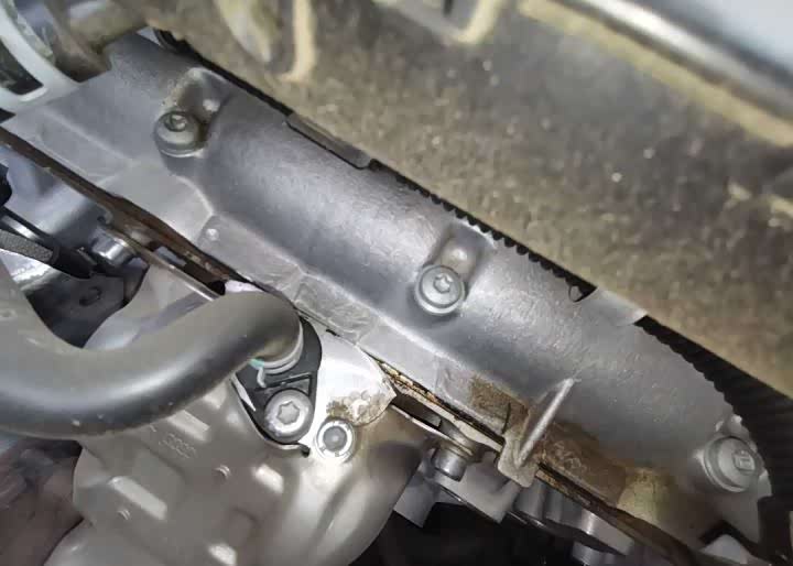 气门室盖作为发动机最上层的零部件,如果分解维修,它肯定是要最先拆的,而眼前除了有一圈油迹以外并无拆卸痕迹。
