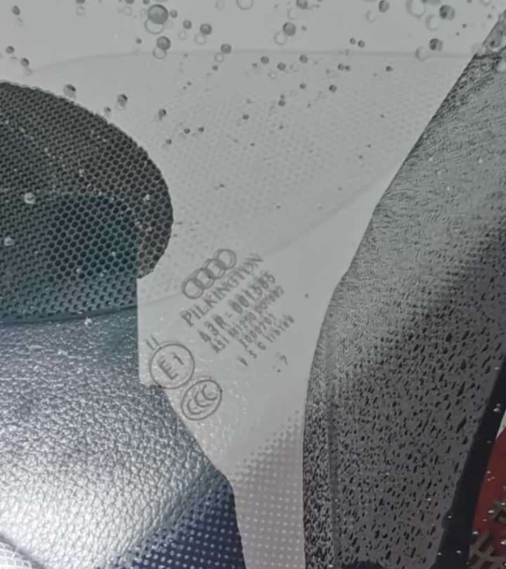 再看风挡玻璃,虽然制造日期符合车辆生产年限,但是里侧的密封胶有溢胶现象,不像原厂机器打的那么均匀,碍于商家在旁边不好扒开拍照,大家只能脑补一下了。所以,巨星怀疑风挡玻璃更换了库存件,看玻璃也不能仅仅参考生产日期。至于更换玻璃的原因,可能是被高速上的石子崩了。