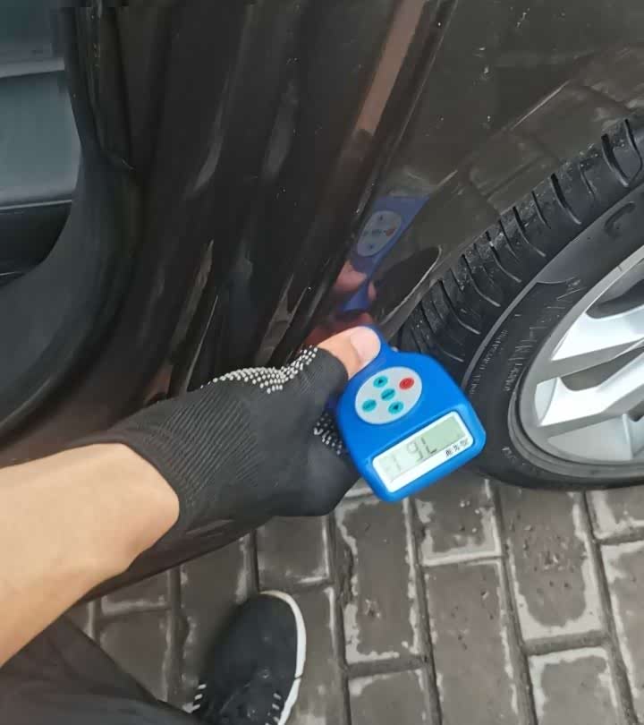 左后翼子板的腻子也不薄,应该和车门更换是同一起事故造成的。