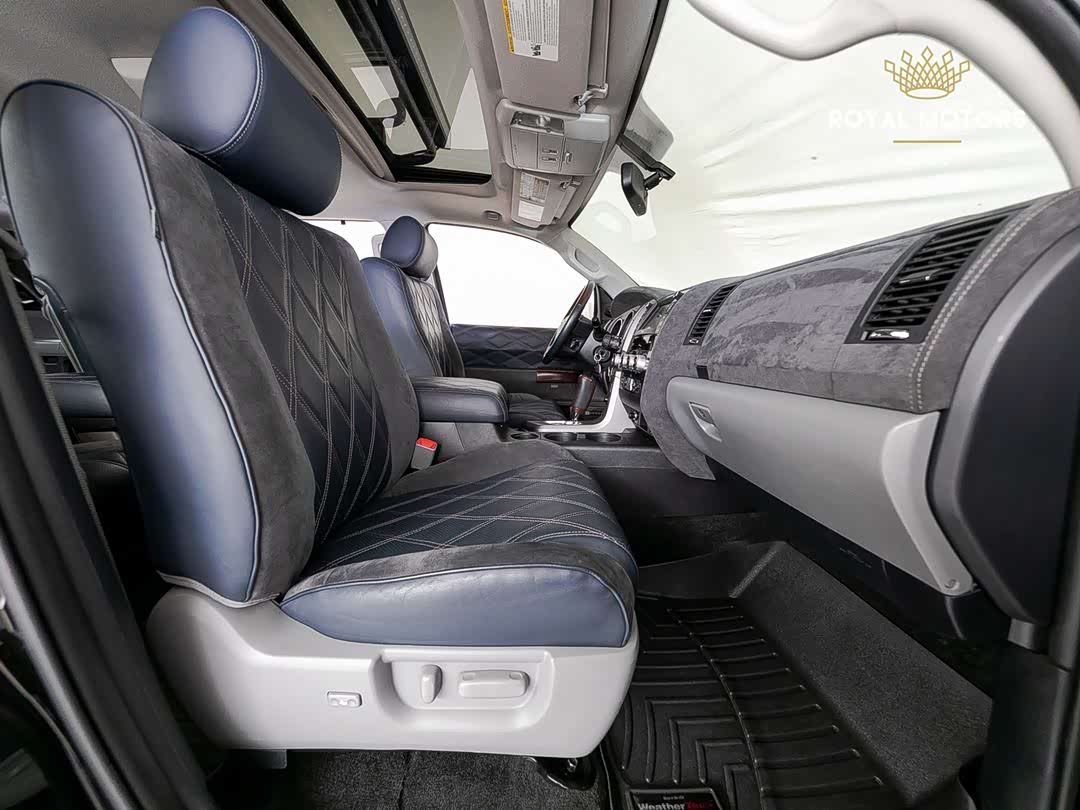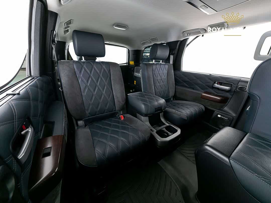 丰田红杉在外观上进行了改装,还采用了哑光黑色的车身涂装设计,整体更加有越野范,外观方面新增了探照灯的设计使前脸看着颇具识别性。车身侧面的轮廓显得颇为大气威武,越野标配的轮胎野性十足。尾部采用了较为规整的尾灯造型,宽大的后包围也带来了较强的安全感。内饰菱形纹理造型的座椅提升了内饰的高级感。动力方面搭载5.7L V8发动机,匹配6速自动变速箱。