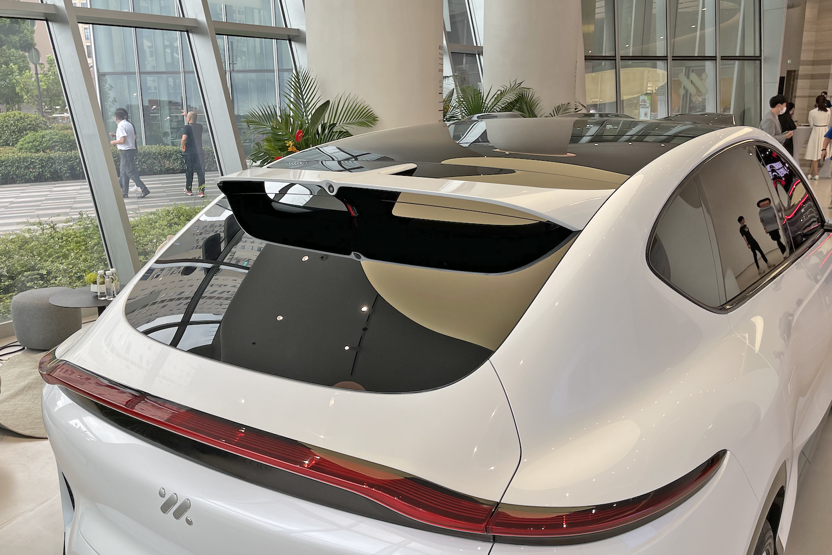 在尾部方面,智己LS7的设计非常大胆,溜背式的造型搭配悬浮式的尾翼相当有创意,让尾部有种翘臀的味道。同时它的尾灯也采用的是贯穿式的样式,点亮后的效果也非常出彩。