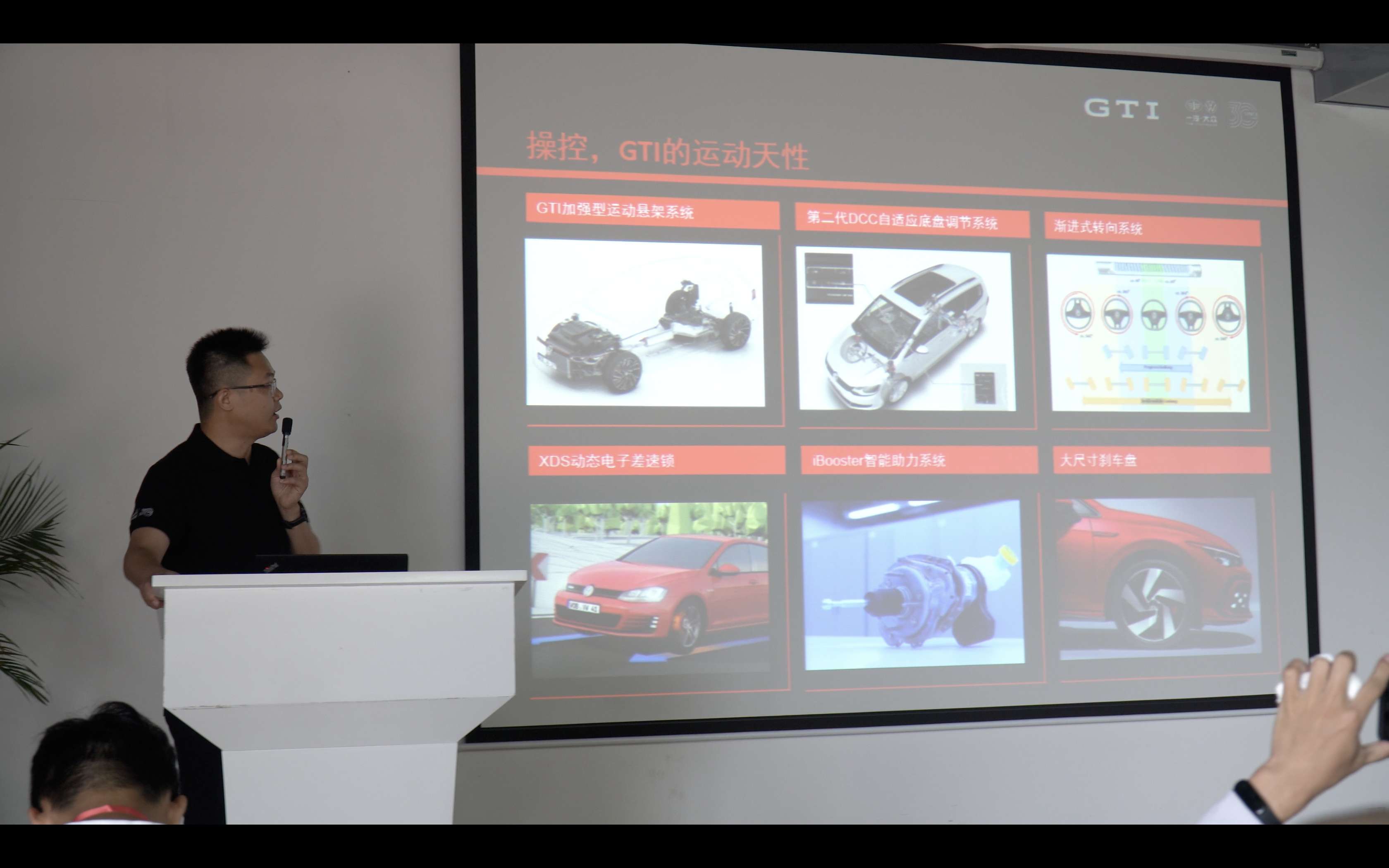 铺垫如此之长原因无他,只是想说明我对于大众家族的性能钢炮,尤其是GTI有着足够丰富的理解基础。试驾前的技术讲解会中,厂家工作人员分享了全新一代GTI的诸多技术亮点,我也认真做了影相记录,其中像首次在GTI上出现的弹射起步模式,以及与欧版同步的渐进式转向系统,第二代DCC动态自适应底盘系统,全新优化后的XDS电子差速锁,更大的前制动盘(直径增加至330mm),并且针对中国市场标配了18英寸的运动型轮圈(欧版为17英寸),尤其值得一说的是在目前国内严苛的国六B排放法规要求下,新GTI同样表现出了非常不错的原厂声浪(本文视频中有所展现)。
