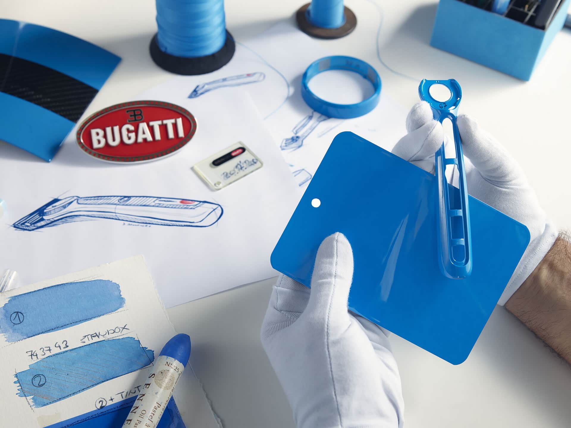 从官方发布的图片看,布加迪与吉利联名特别版热感剃须刀采用了布加迪Chiron Pur Sport车型独特的Bugatti Agile Bleu色彩,手柄上有布加迪的车标,并且采用铝锌材质,与布加迪Chiron Pur Sport车型内饰设计所使用的高光铝材和钛等独特轻量化高科技材质相呼应。