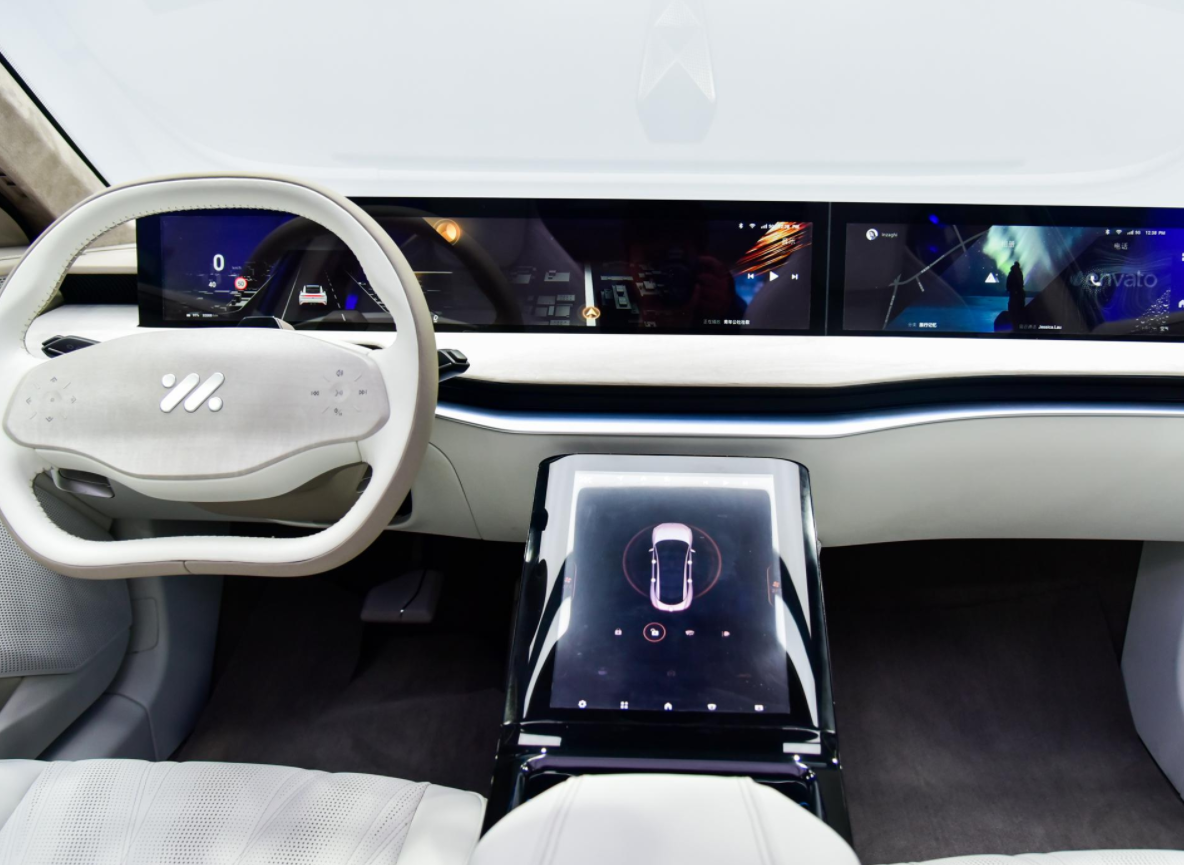 智己L7的内饰同样贯彻外观的科技风,中控台的造型极为简洁,几乎见不到有物理按键的存在。中控台配备了尺寸达到39英寸的三联彩屏,并支持升降调节。中控台底部还配备了一块12.8英寸液晶屏幕,这块屏幕还搭载了IMOS操作系统,能够为你提供全新的智能化体验。