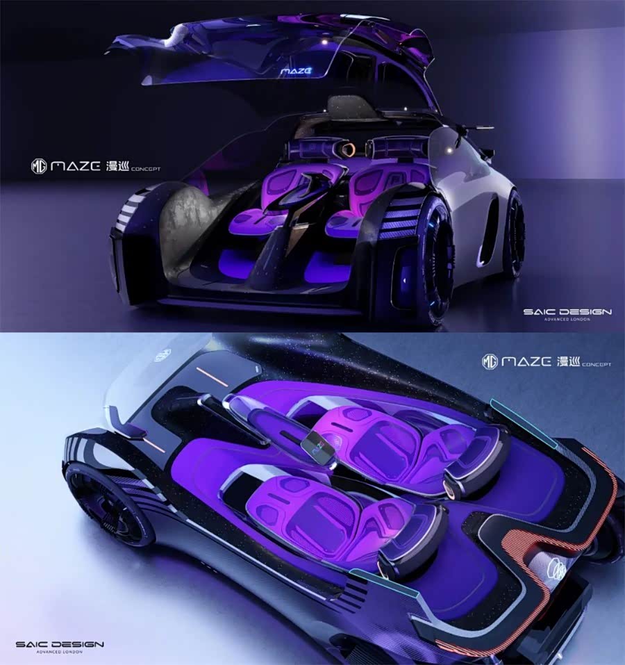 而MG漫巡概念车定位为“元宇宙畅游概念车”,从游戏中获取灵感,在真实世界与虚拟世界里交错漫游,为新世代消费者创造移动方式新体验,驾驶它在真实的城市中寻找虚拟的彩蛋。轻轻一触,一体式全景舱盖向上掀起,独立双座自动前伸欢迎入舱。拿起手机开始游戏,MG漫巡将听从指令任意穿梭,对城市展开全新的探险,在寻找彩蛋的过程中一边玩乐,一边赚取奖赏。