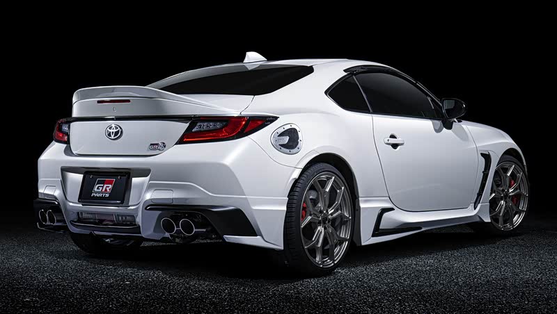 在GR改装套件方面,目前原厂共准备了前包围下扰流板、进气孔定风翼、前翼子板导流鳍片、侧裙、后备箱扰流板、后包围下扩散器、运动型晴雨窗、油箱盖饰板、运动型排气管、19寸锻造轮圈、可调式避震器套件、刹车套件等,从空气动力学到操控性能都能进行升级,满足GR 86车主个性化的改装欲望。