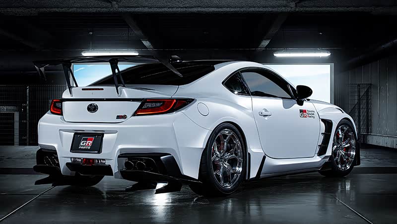 根据TRD的说法,GR Parts Concept是一款不受法规限制、追求更快速度的改装作品,不只针对这款2.4升水平对置直喷发动机进行缸内强化、更换进排气系统等,同时也会进一步提高车身刚性、减轻车重,并且改善车辆的空气动力学性能,其目的是为了让GR 86能够在赛道上缩短单圈时间。