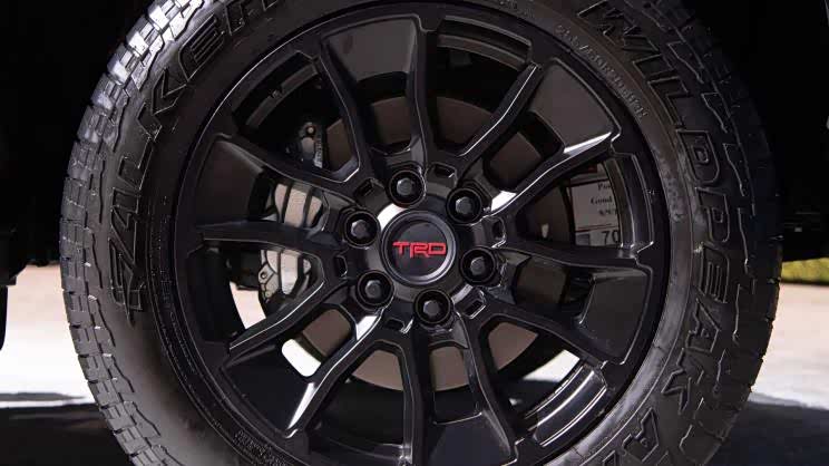 TRD版本的车轮也与众不同,采用了黑色轮圈,从目前曝光出的图片来看,较大的花纹应该是搭载了AT轮胎。