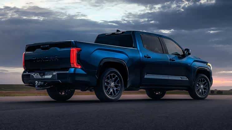 皮卡车型的尾部造型其实并没有什么突破,大家都是纵向排列的尾灯,全新坦途的的尾部货箱版也增加了立体的坦途英文标识,后包围处将会配备宽大的护板;TRD Pro则将配备一款银色后包围。