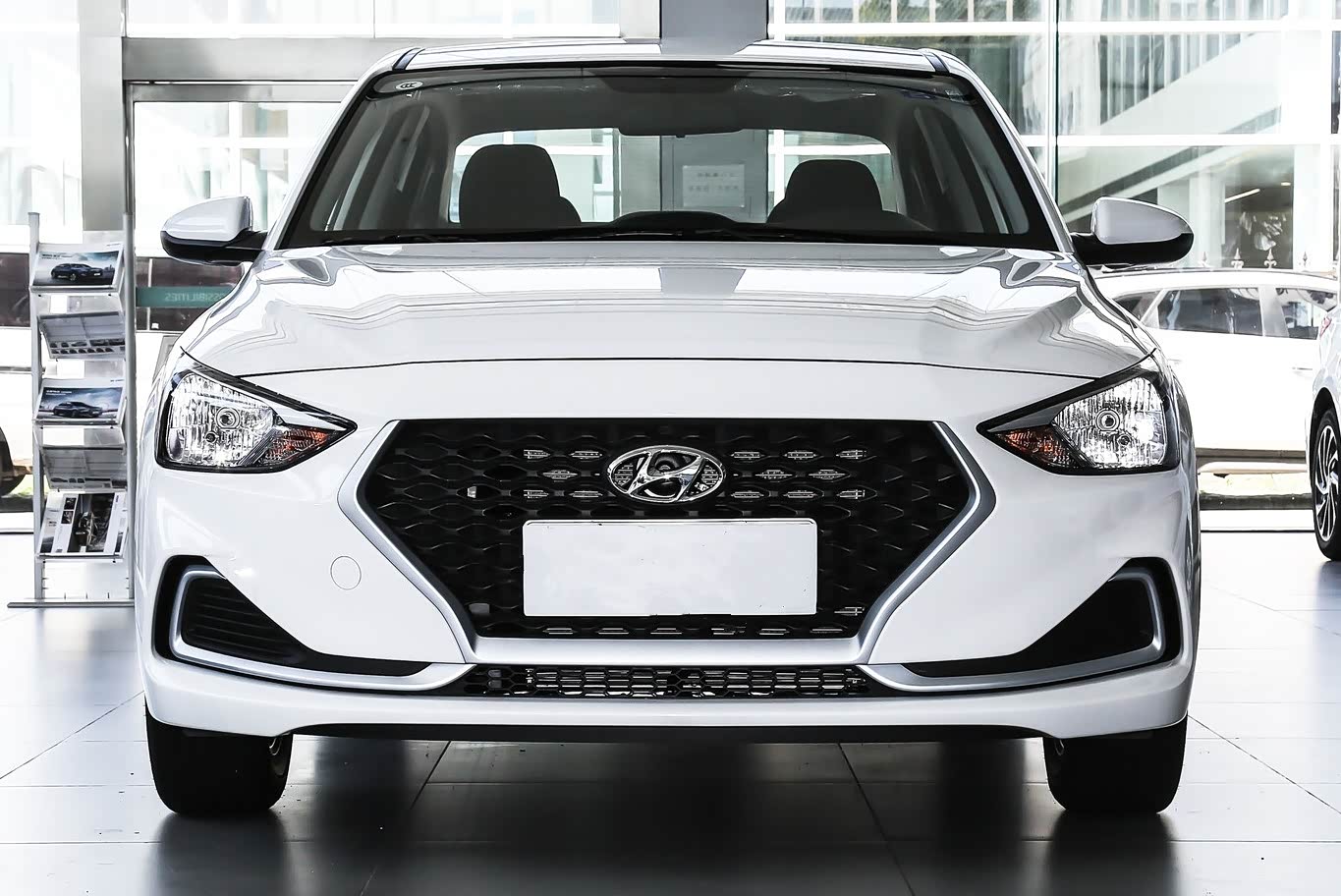 皮质的主驾驶位座椅支持电动调节,并且后排座椅拥有扶手和杯架。车内的扬声器数量升至6个,但是音质并没有实质性的提升。即使是顶配,悦动依然只是卤素的远近光大灯,只是具备自动大灯功能。
