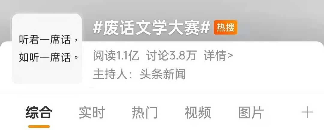 微博上甚至还出现了“#废话文学大赛”,话题总阅读量过亿,有才的网友们按着同一个套路创作“废话文学”,玩得不亦乐乎。