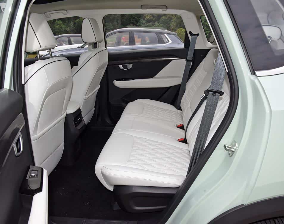 同样身高体验者乘坐远景X6 PRO的后排,腿部空间剩余一拳多的距离,头部空间还有四指。空间表现明显比不过五菱星辰,但是对于日常家用来说也能满足使用需求。两车后排都配备空调出风口和一个USB接口。