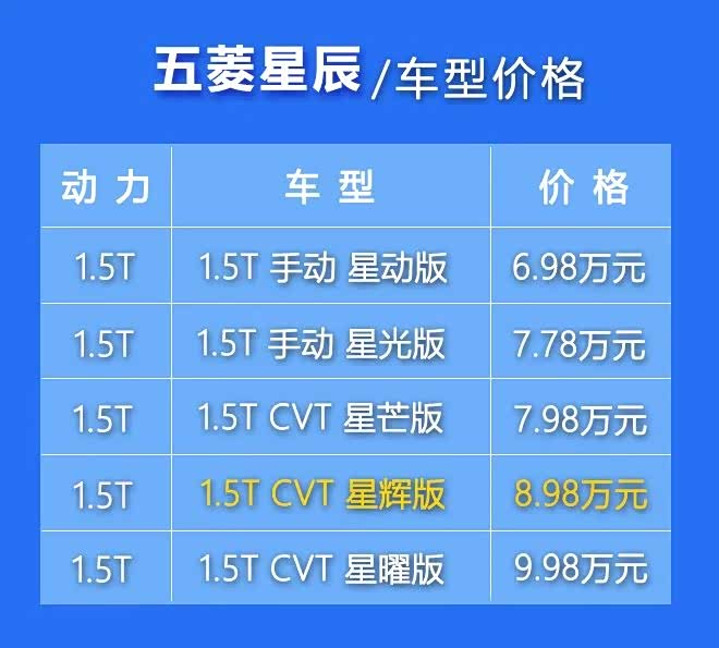 五菱星辰于9月16日正式上市,新车共推出5款配置,并提供手动挡和自动挡两种版本,售价区间为6.98万—9.98万元。新车定位紧凑型SUV,值得一提的是,星辰是五菱品牌继凯捷之后,第二款采用“五菱银标”的全新车型,这也彰显出它比以往采用普通车标的车型,显得更加高端。