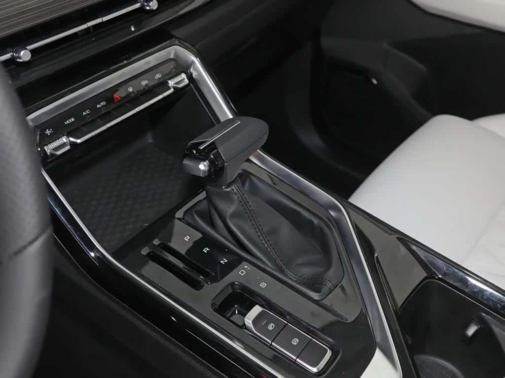 空调出风口下方有一排物理按键,主要对空调风量及出风位置进行调节。此外,主副驾驶之间的换挡区域采用银色包裹的斜边设计,自动挡车型挡位采用梯形的飞机档把样式,左侧设有两排卡槽,以及电子手刹和自动驻车功能按键,并且还提供S挡运动模式。