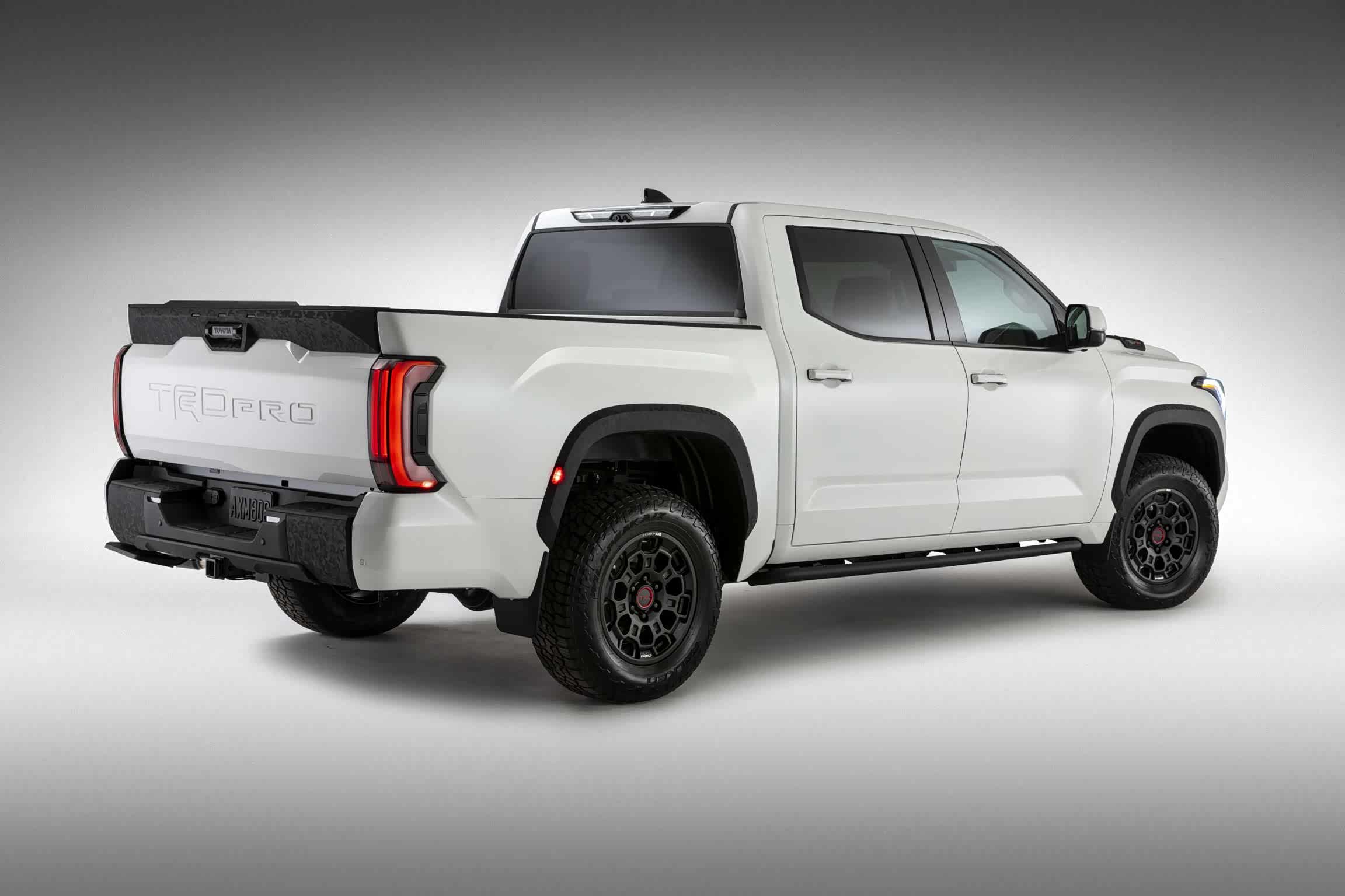 车身侧面最明显的不同就是A柱采用了隐藏式设计,营造出悬浮式车顶的视觉感受,同时轮拱处将会采用“宽体”设计风格来缔造出更强的肌肉力量感。车尾部分反倒没那么令人惊艳,但还是有着豪迈的风格设计,直立式尾灯组辨识度相比现款更为耀眼。此外,后保险杠宽大 的护板也进行了全新设计,TRD Pro则配备一款更具野性的银色后保险杠,拥有更强的视觉冲击力。