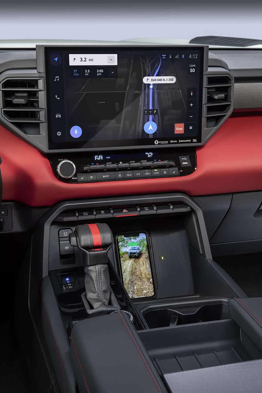 而全新Tundra的内装也相当令人惊艳,除了通过降低高度的数字仪表盘来达到更开阔的视野外,中控台娱乐信息屏幕则升级为8英寸,顶配版车型则更是达到了14英寸的全新境界。此外,更加直观和反应灵敏的系统界面不仅支持Apple CarPlay和Android Auto,同时也整合Amazon Music和Apple Podcasts等功能。