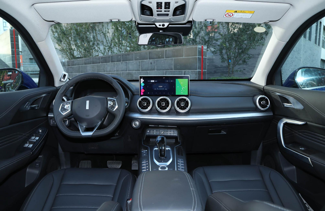 进入WEY VV5车内,中控区域以软性材料和皮质材料覆盖为主,摸上去质感不错,空调出风口是圆形设计,而从科技感受来看,仪表屏跟中控屏幕没有连接在一起,全液晶仪表屏尺寸在12.3英寸,中控屏幕尺寸同样在12.3英寸,采用悬浮式设计,内置行车记录仪功能,从车机系统上面来看,长城WEY一直想要打造自己的智能车机系统,支持车联网以及OTA升级,没有提供手机互联,前排是有两个充电接口,但后排是一个没有,稍微有一些遗憾。后排地板位置比较平整,平时坐三个成年人不会觉得太难受,有单独后排出风口,虽然不能独立调节,但出风效果不错,对于空气质量有要求的朋友,可以加价500元选装车载空气净化器,个人觉得物超所值。