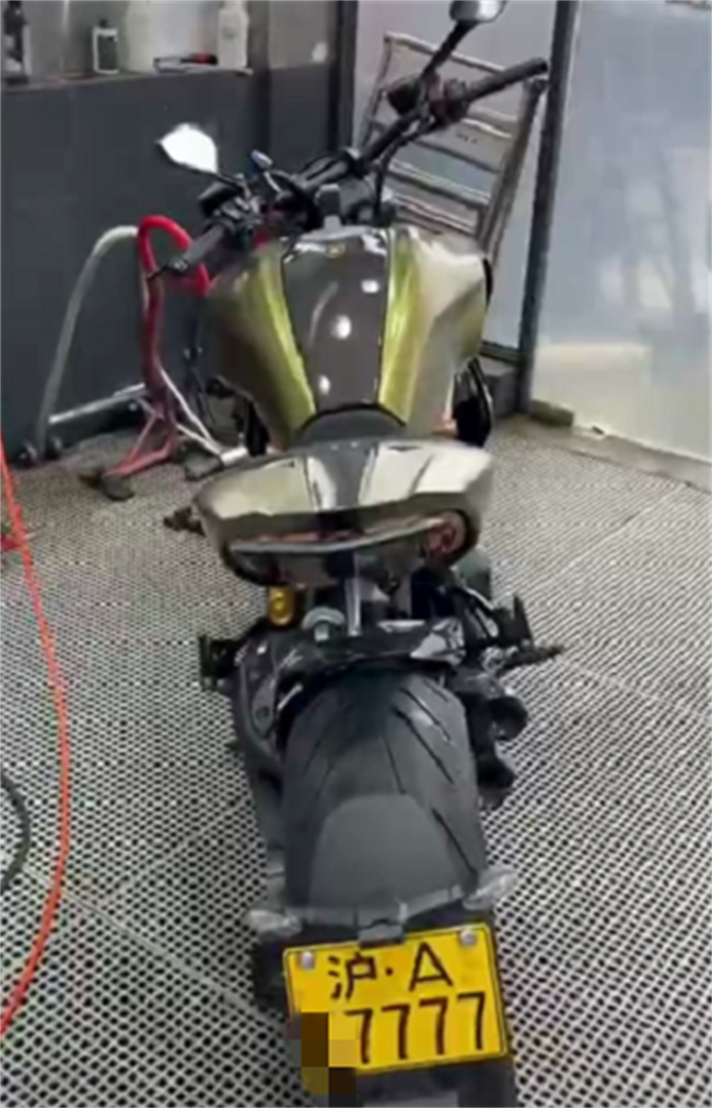 原来,这款杜卡迪的车牌号是沪A开头的,而且还是四连号7777这类炸弹号,非常值钱,车牌比车还拉风。