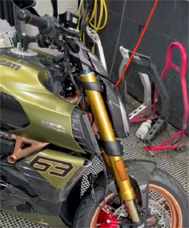 据悉,该款摩托车便是杜卡迪和兰博基尼的联名版 Diavel 大魔鬼,全球限量,车型定位街车,采用2轮单座设计,配单摇臂,车身拥有ABS系统,车辆稳定性极高。