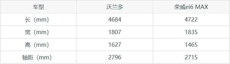 沃兰多和荣威ei6 MAX尺寸/空间对比