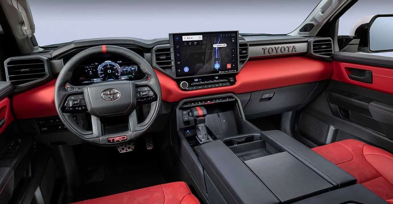 Tundra提供双排布局,(CrewMax)标准版的后仓尺寸为1676mm,相对来说货斗对比同级会显得稍微有点局促,但丰田也表示,新坦途的后仓是支持选装1981mm、2469mm尺寸的。
