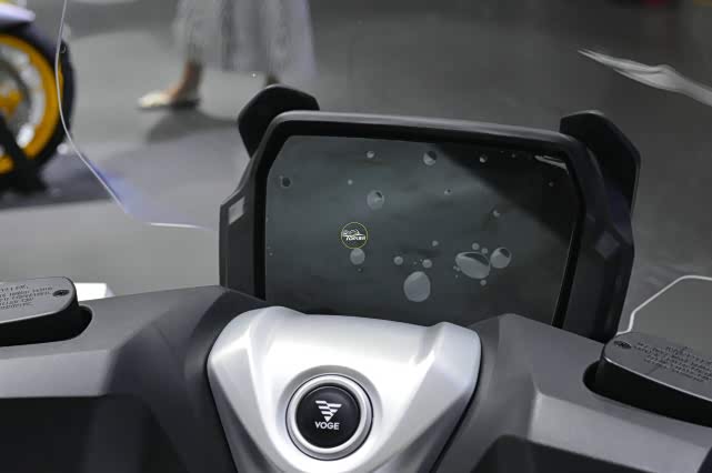 这一块尺寸不小的仪表,是全彩TFT的形式,具备互联功能。另外,手把中间部分的无极LOGO,实际上是无钥匙启动按键。