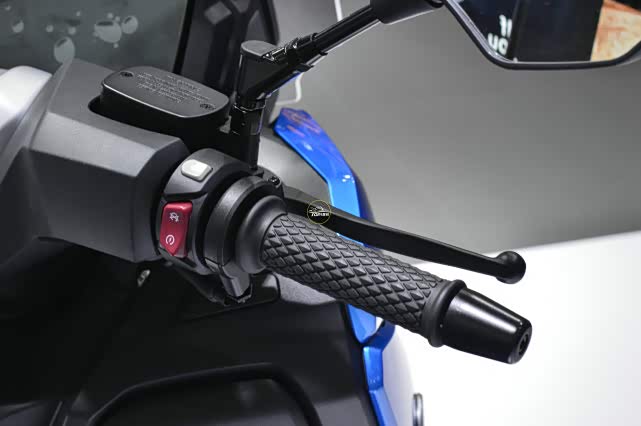 宽大舒适的坐垫,座高只有761mm,前排座椅的腰靠,以及脚踏的位置和样式,都和C400GT非常接近,要说这台车跟宝马没有关系,我想没人会相信。