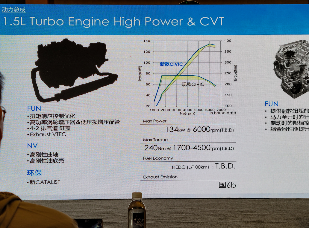 在说明会提供给我们的PPT中,我们能够看到新思域的发动机参数其实是有着些许提升的,最大182Ps(134kW)的动力参数可是一点都不“买菜”,那么实际表现究竟如何?