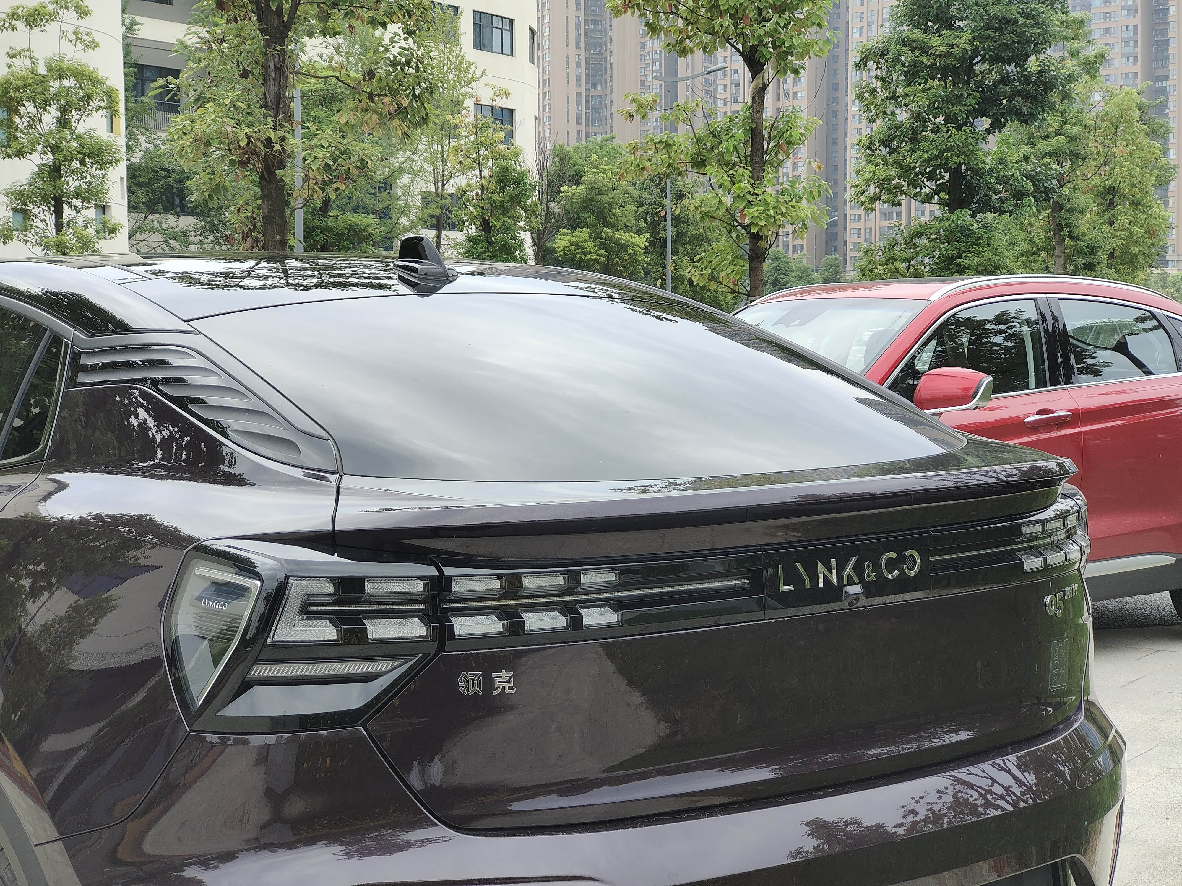 整个车尾的Coupe设计,其实是领克05 PHEV和星越PHEV最大的不同。简单来讲,领克05 PHEV的D柱更加飘逸,这主要是因为领克05 PHEV轴距更长,整个车顶下滑更流畅,一直延续到车尾形成了一个一体式尾翼。同时整个尾灯像是被嵌入进去一样。这个设计细节非常精彩,让整个车身的动感姿态被勾勒得更凸显。