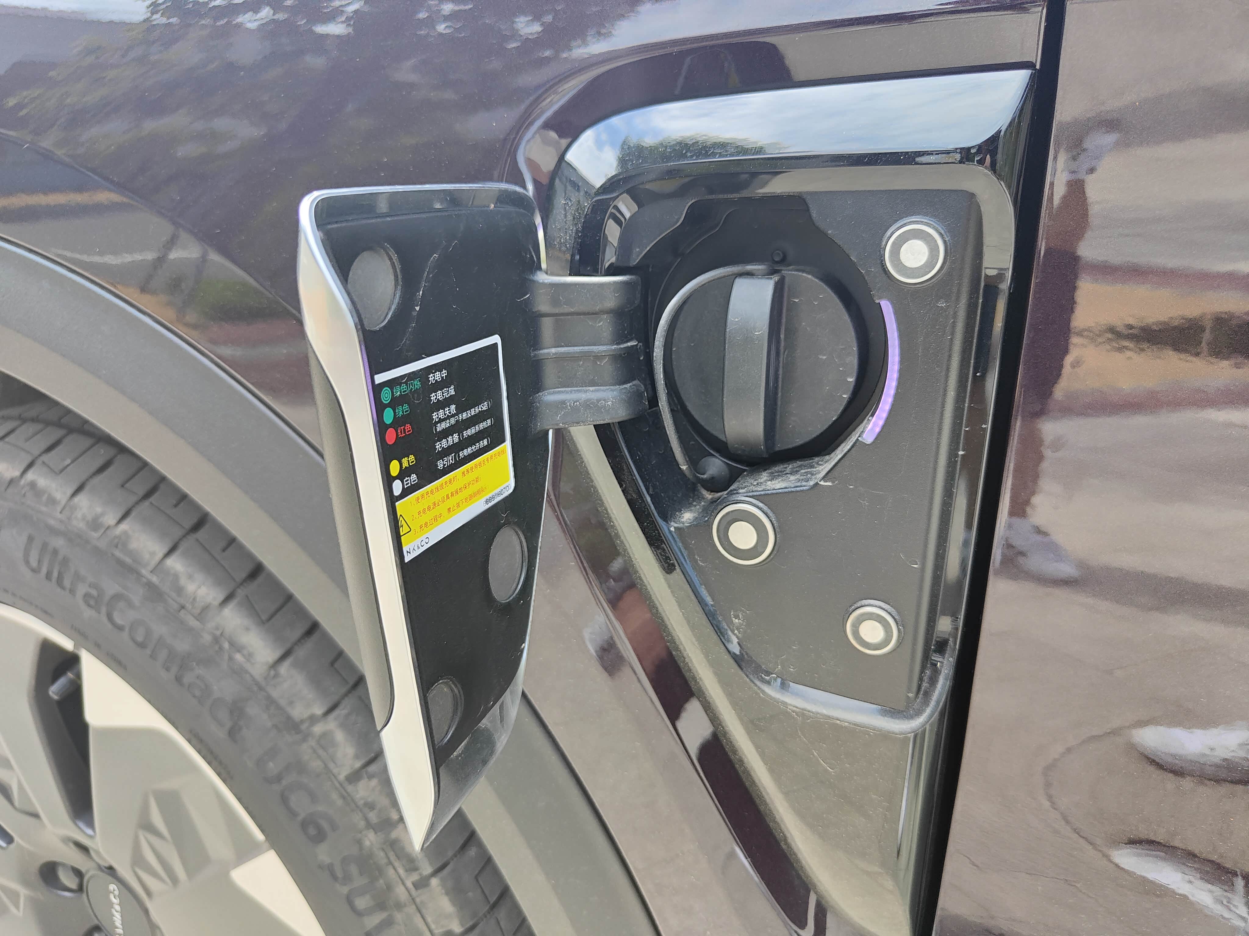 翼子板下方有一个充电口——并且是对称设计——还是很有设计感,打开以后是有照明的,只是必须从车内按键解锁。相比之下,星越PHEV此处设计就太普通了,就是一个盖子,有个呼吸灯。不过和星越PHEV一样只支持6.6kW的交流慢充,充满大概需要2个半小时左右。