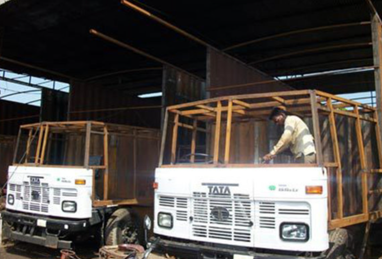在印度,司机可以直接购买卡车底盘,一款没有货厢和驾驶室的底盘卡车,相较于整车而言价格要实惠很多,对于人民还不富裕的印度而言,这种高性价比的车型必然会受到欢迎。买到底盘卡车后,印度司机会到修理厂自建驾驶室和货厢,还能根据个人的经济能力“丰俭由君”,采用不同的材料、做工和设计来打造自己的“爱车”。